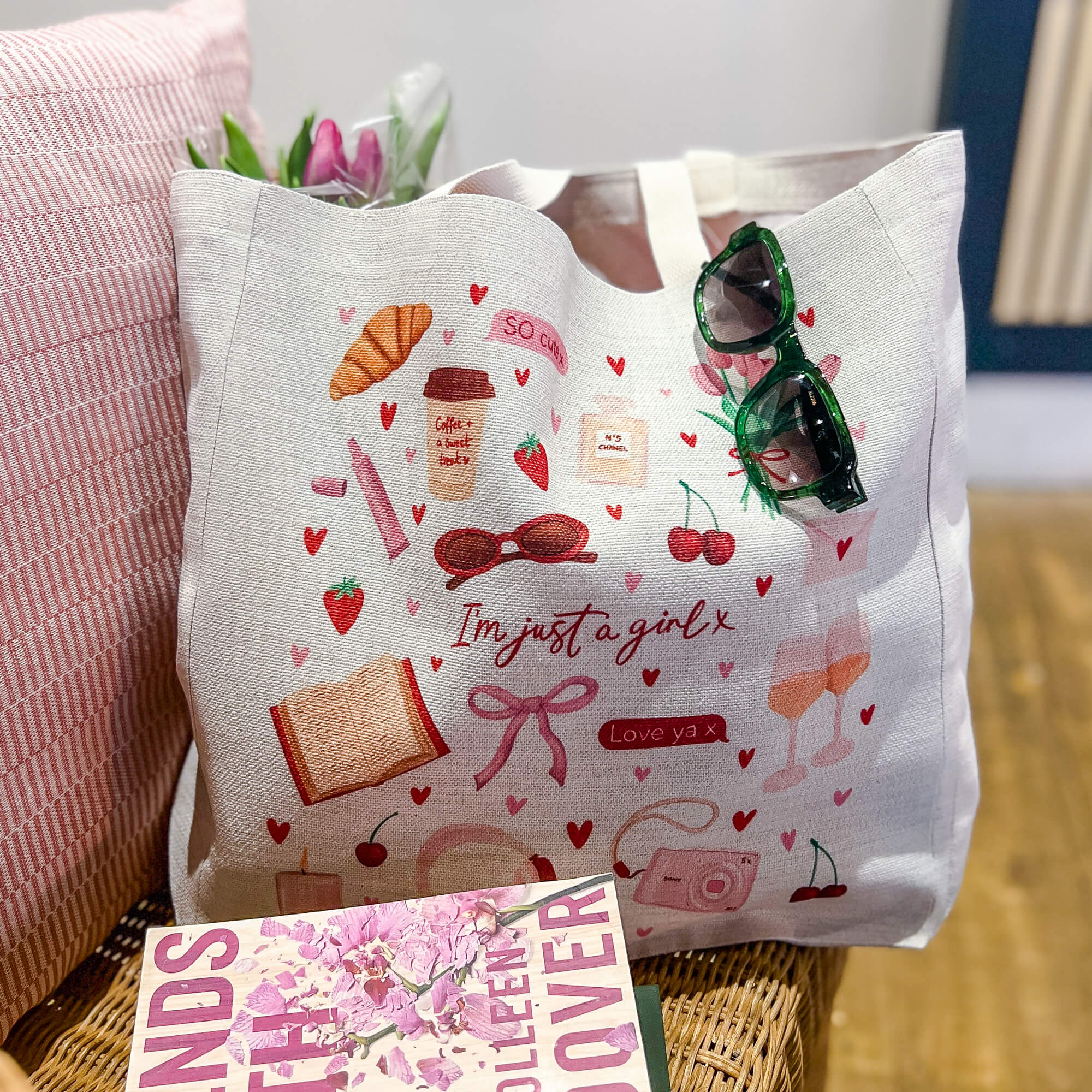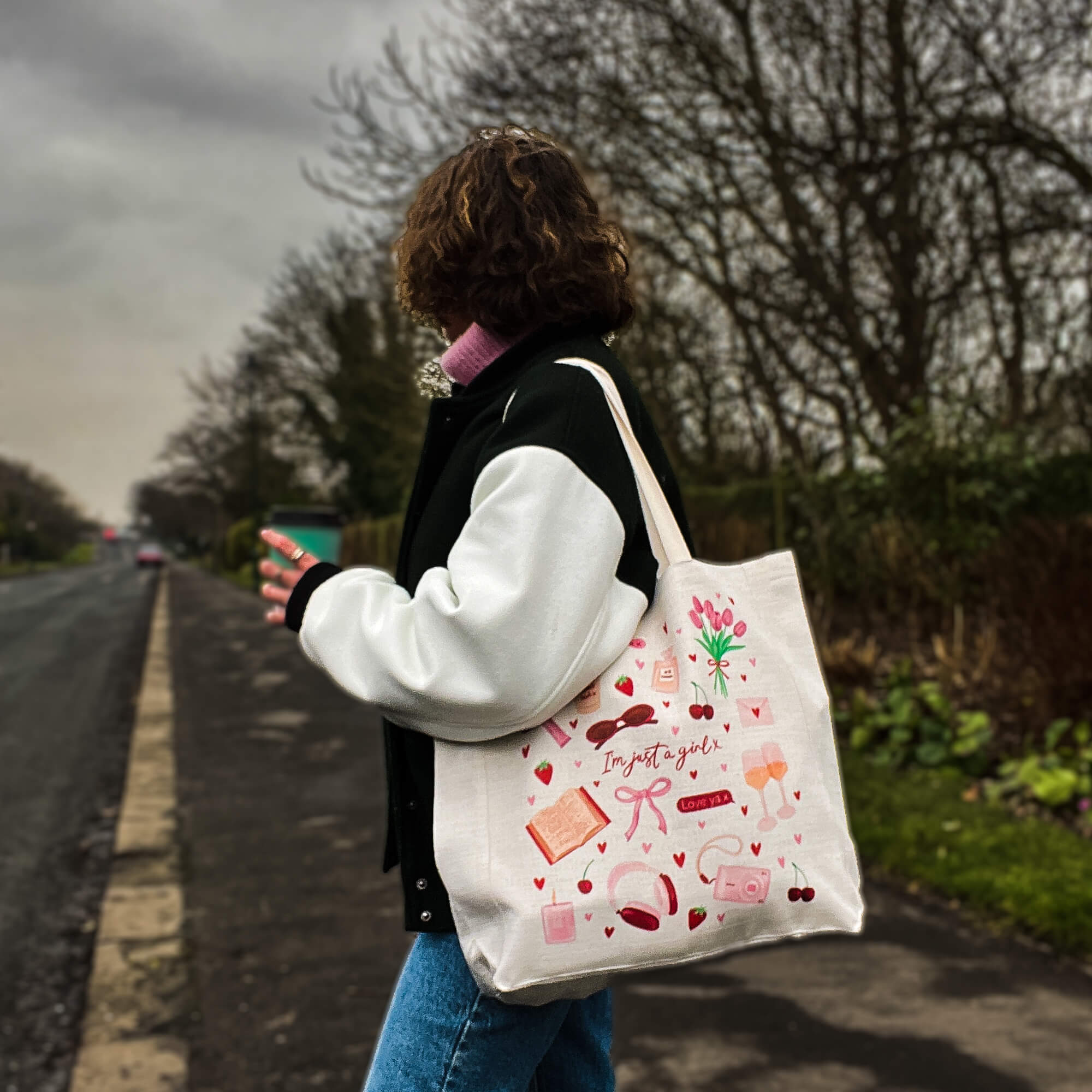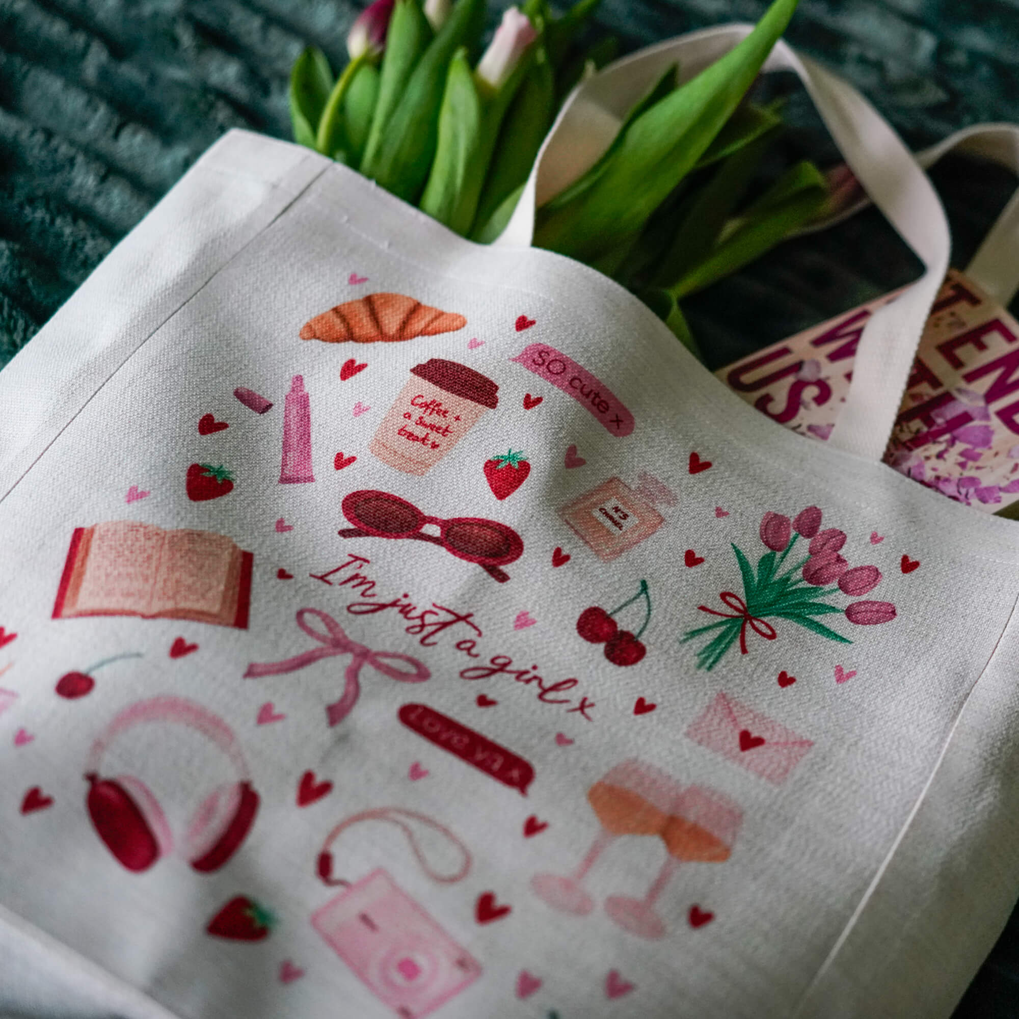 Make a statement with the “I’m Just a Girl” Tote Bag – the perfect gift for a friend or treat for yourself.